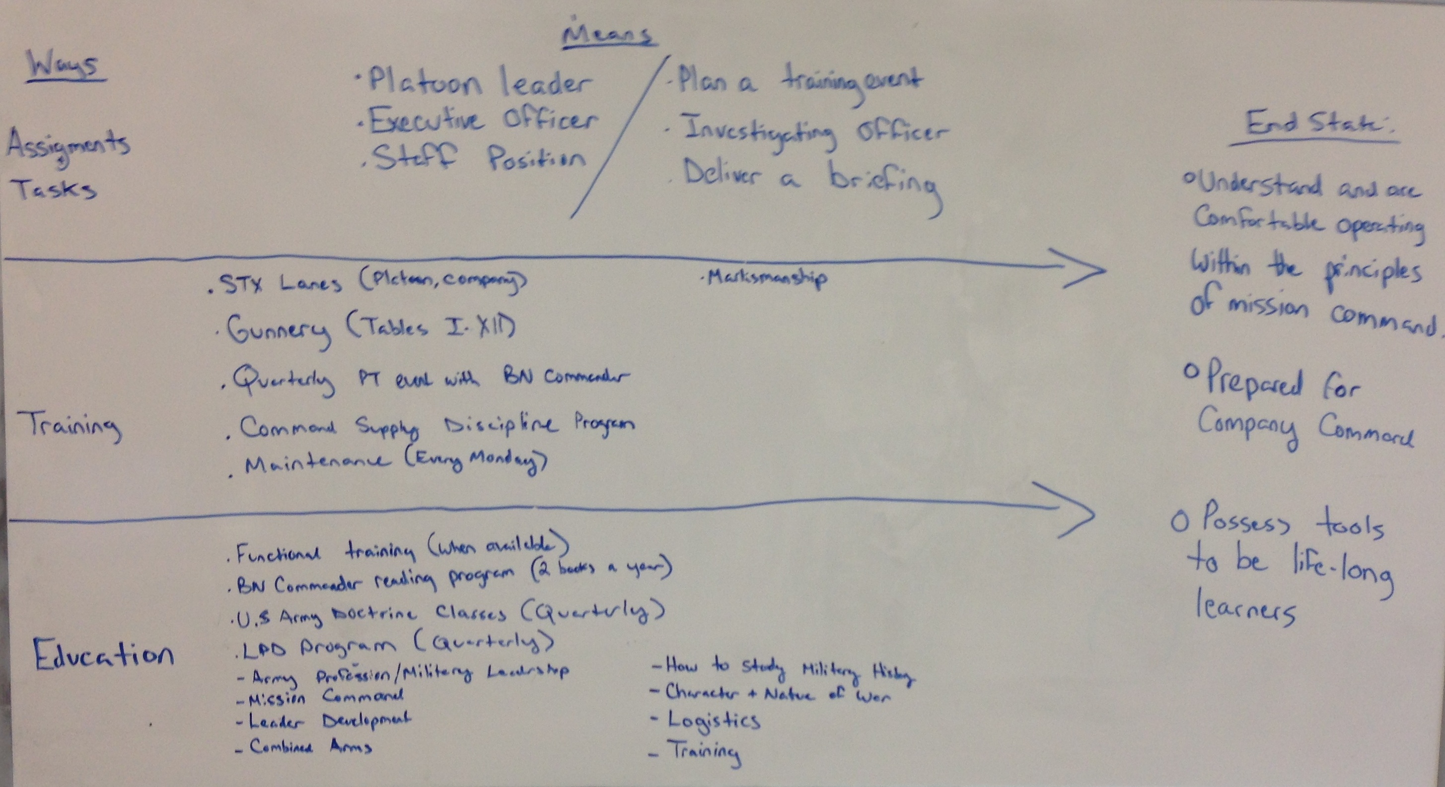 Step one: Identify the desired ends. What are the outcomes I want to achieve? What is my desired end-state for the officers or NCOs I’m responsible for?