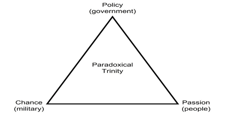 Understanding the environment and realities of large-scale ground combat operations should not be a shock to society. Clausewitz discusses this as a balance of three factors in war; Passion (the People), Chance (the Military), and Policy (the Government). Western militaries have discussed the Paradoxical Trinity for almost two centuries. Maintaining an acceptable balance within this trinity is considered important in war and applicable to large-scale ground combat operations. The Army owns part of the chance element but is connected to the other two elements; however, there is no independent element of the trinity. This requires a relationship across the Paradoxical Trinity.